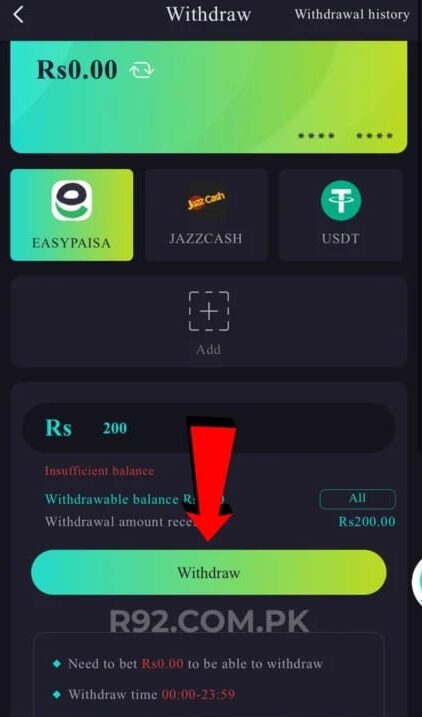 Unlike many unverified apps, 92 R ensures transparency, quick withdrawals, and no hidden charges, which builds strong trust among users. Registration is simple and takes only a few minutes, allowing players to start their earning journey instantly. The platform supports popular local payment methods including JazzCash, Easypaisa, and bank transfers, making deposits and withdrawals easy and accessible for users across Pakistan.